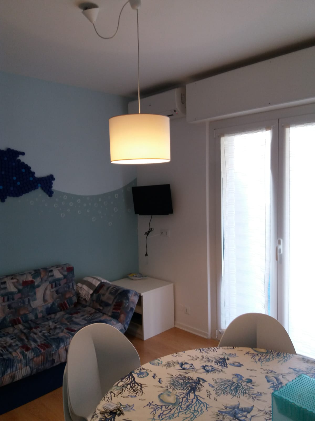 Appartamento situato a Sabbiadoro, a 700 m dal mare. piccola palazzina appena ristrutturata, complesso residenziale in zona silenziosa a pochi minuti a piedi dalla spiaggia e ben servita da supermercati e ristoranti. Piano rialzato e composto da una camera matrimoniale con terzo letto, soggiorno con angolo cottura e divano letto singolo, bagno con box doccia, TV, lavastoviglie, terrazzo , aria condizionata. Posto auto numerato. Appartamento completamente ristrutturato.